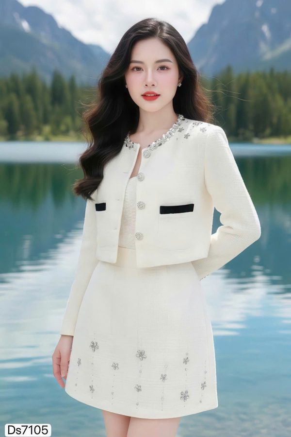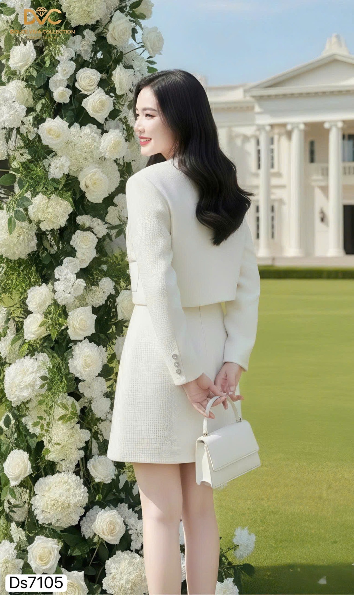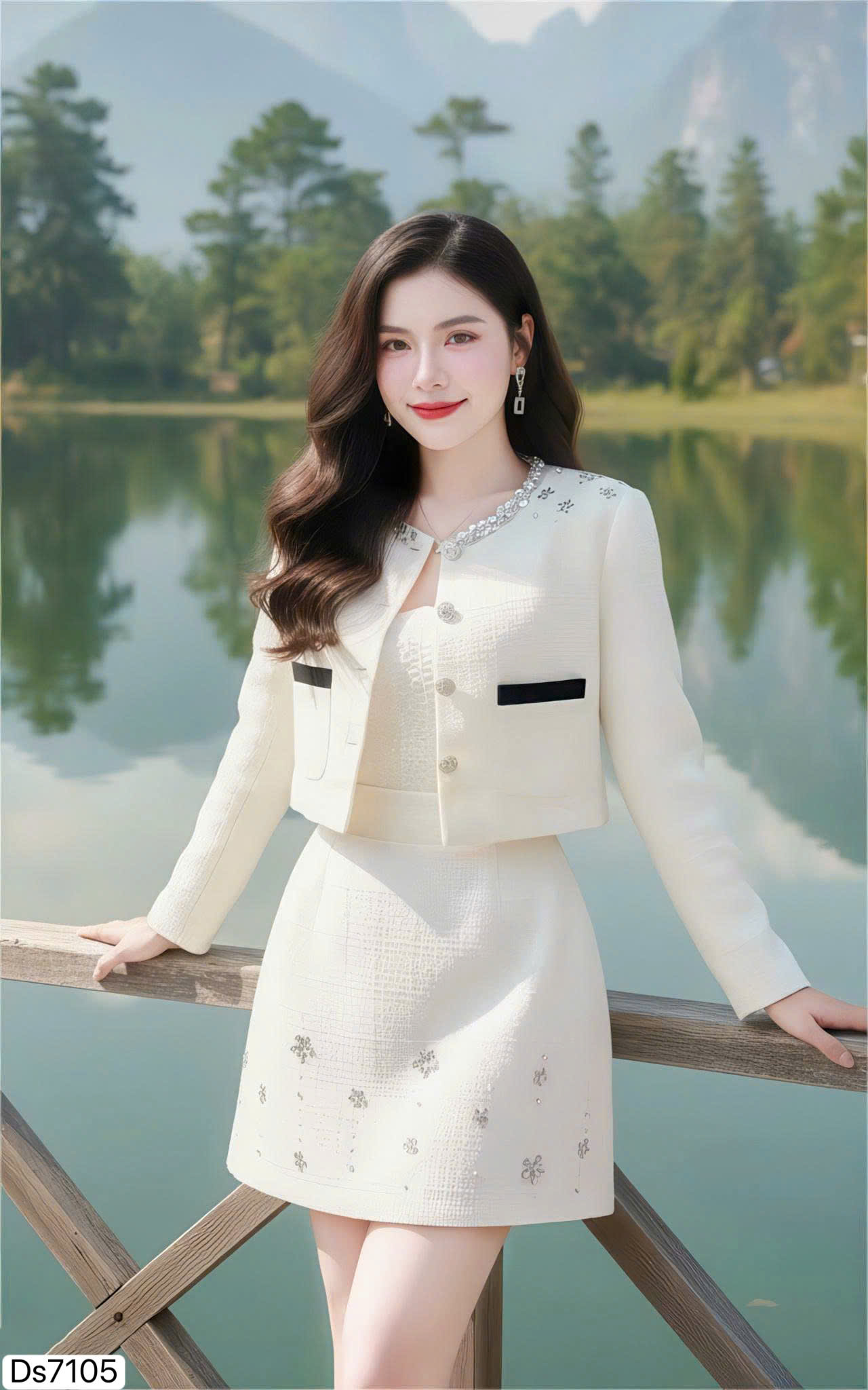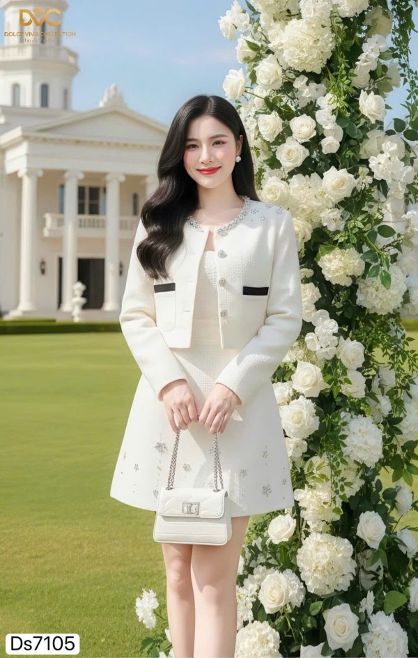 ✨ IVORY TWEED PRINCESS – PEARL-TRIMMED IVORY TWEED SET | DS7105