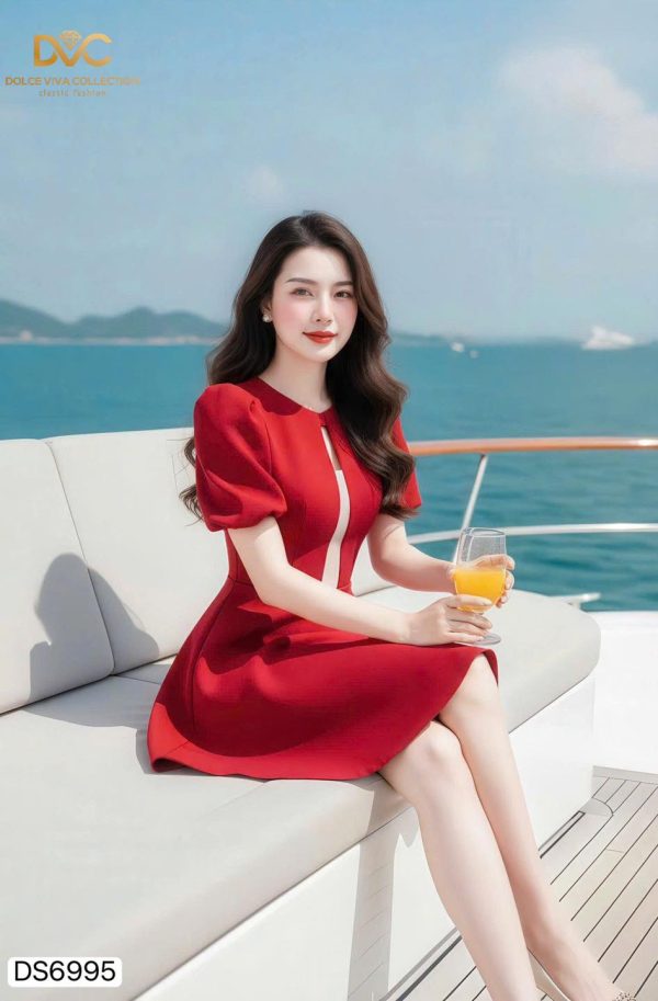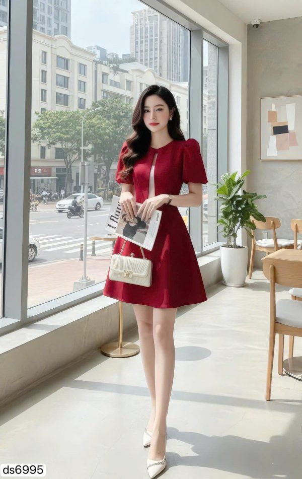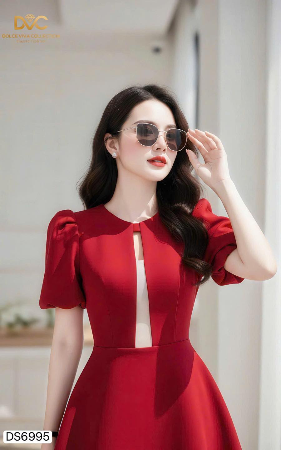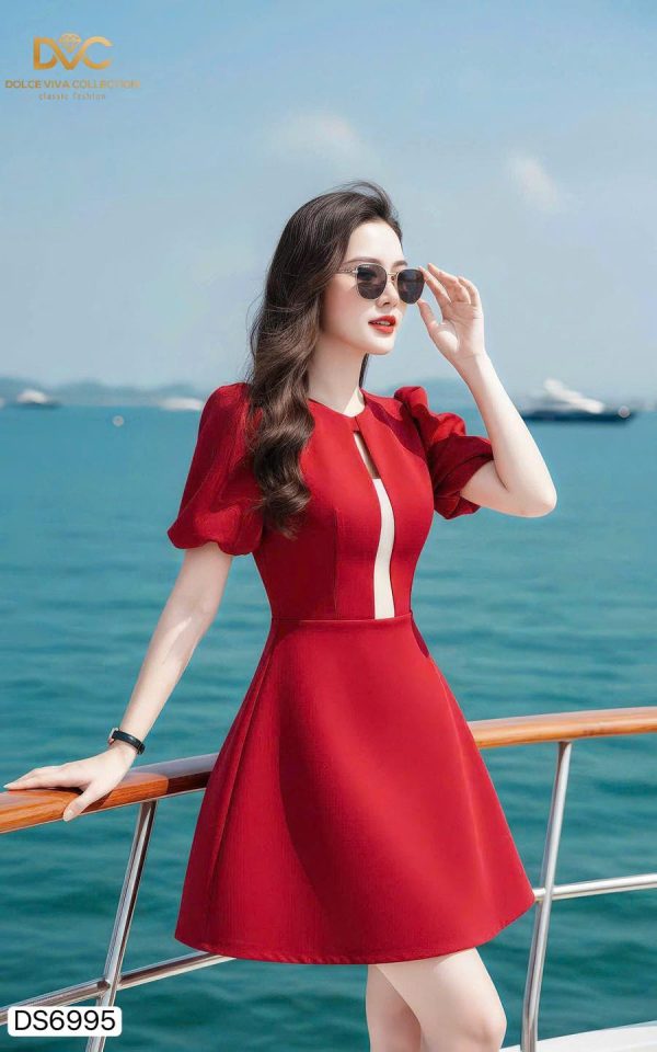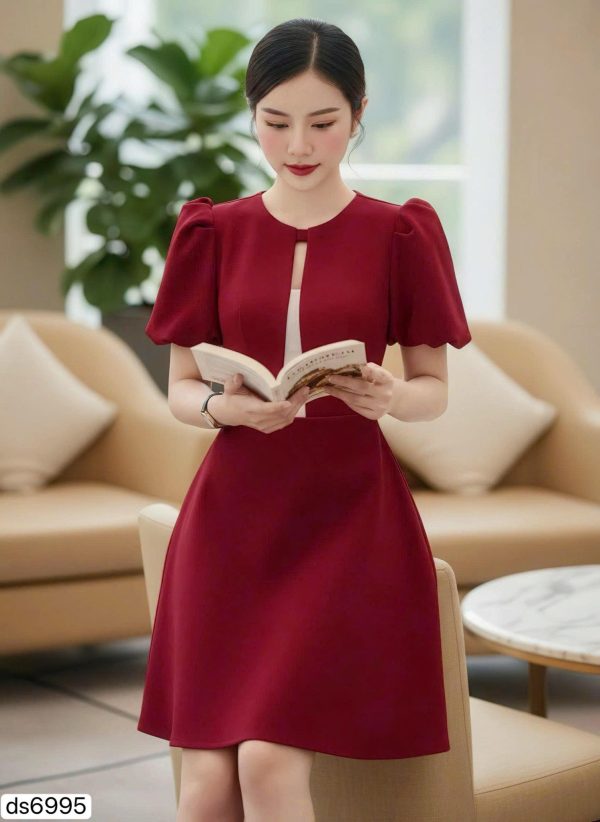 🌟 Highlights: Gentle flare silhouette, refined chest cut-out, tailored fit for elegant curves