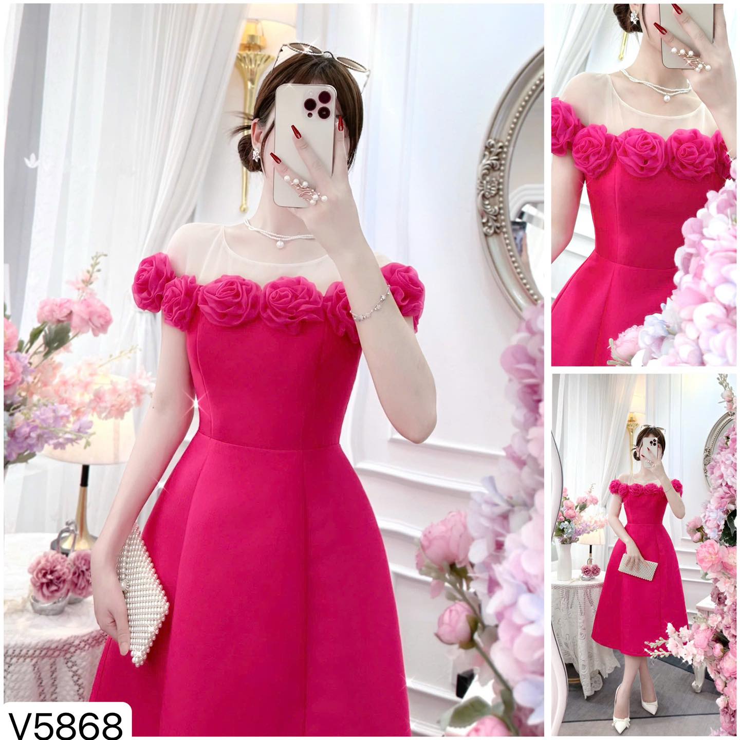 Design Highlights: Off-shoulder rose appliqué neckline, tailored A-line silhouette, sculpted waist, fully lined for comfort and shape retention