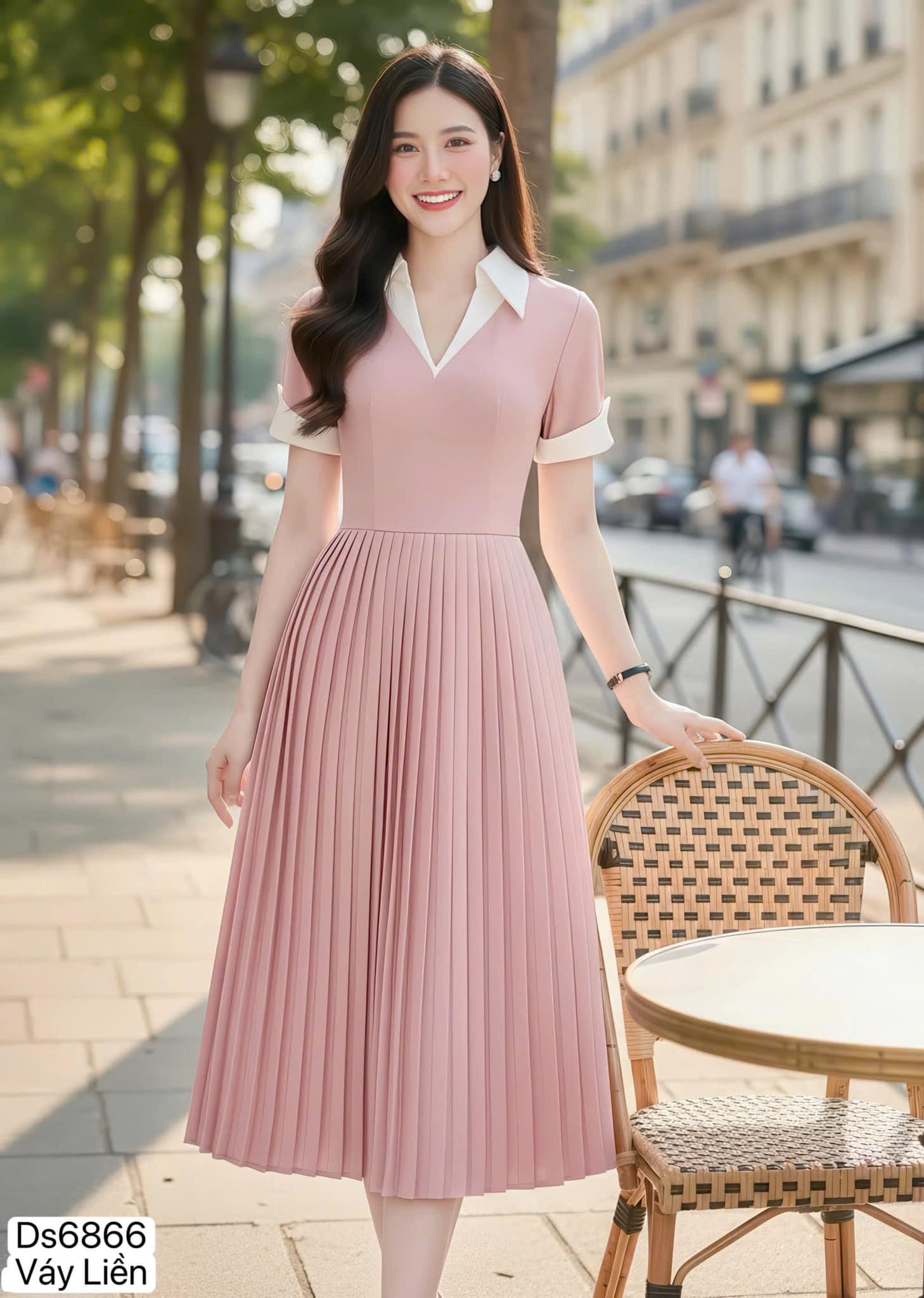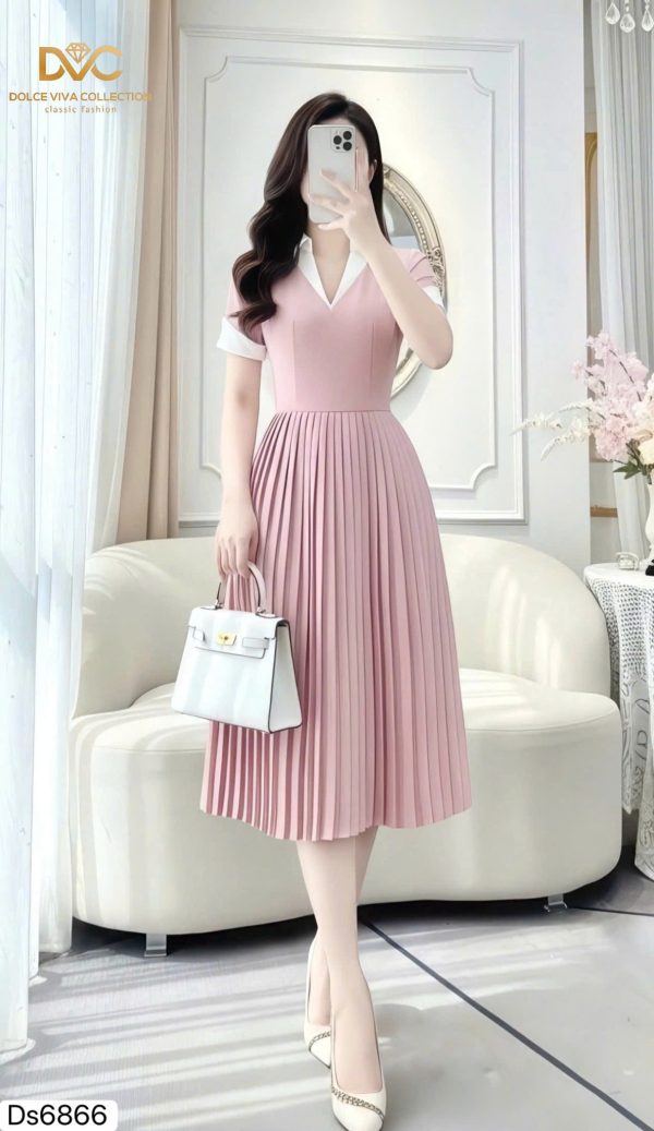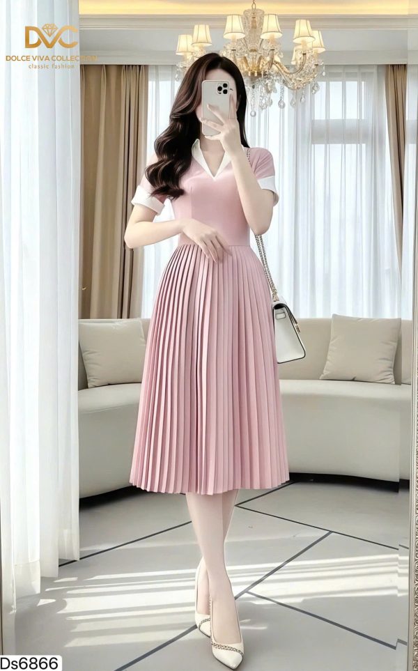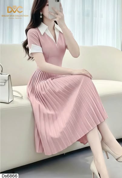 ✨ Highlights: White shirt-style collar | Neatly pleated skirt | Flared silhouette | Short sleeves
