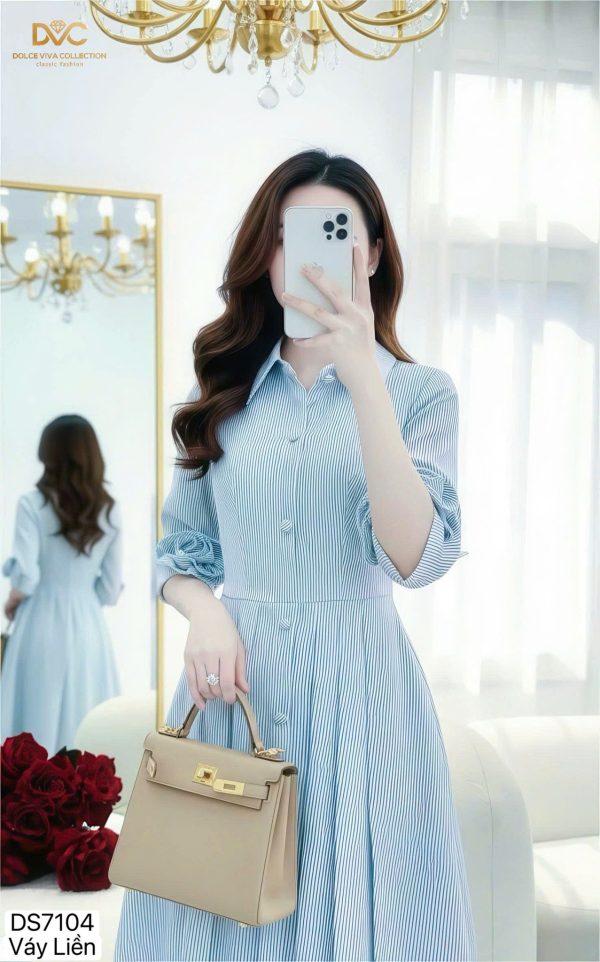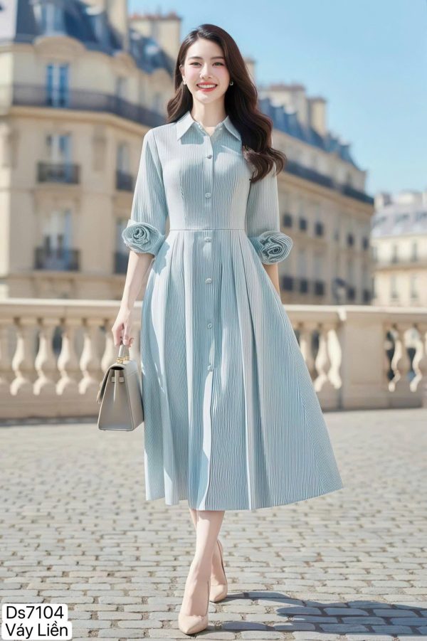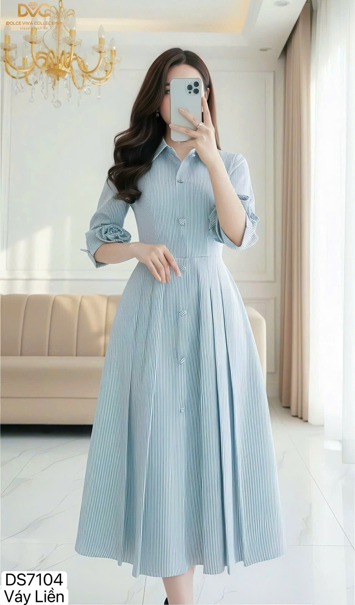 ✨ Highlights: Long shirt-dress | Waist-accent silhouette | Hand-crafted pleated sleeves