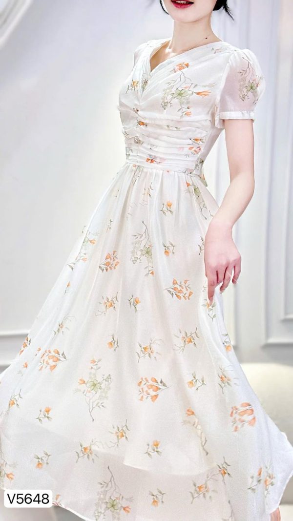 Fabric: Lightweight chiffon with subtle floral prints – airy, soft, and elegantly flowing