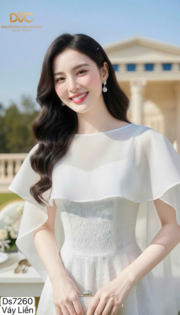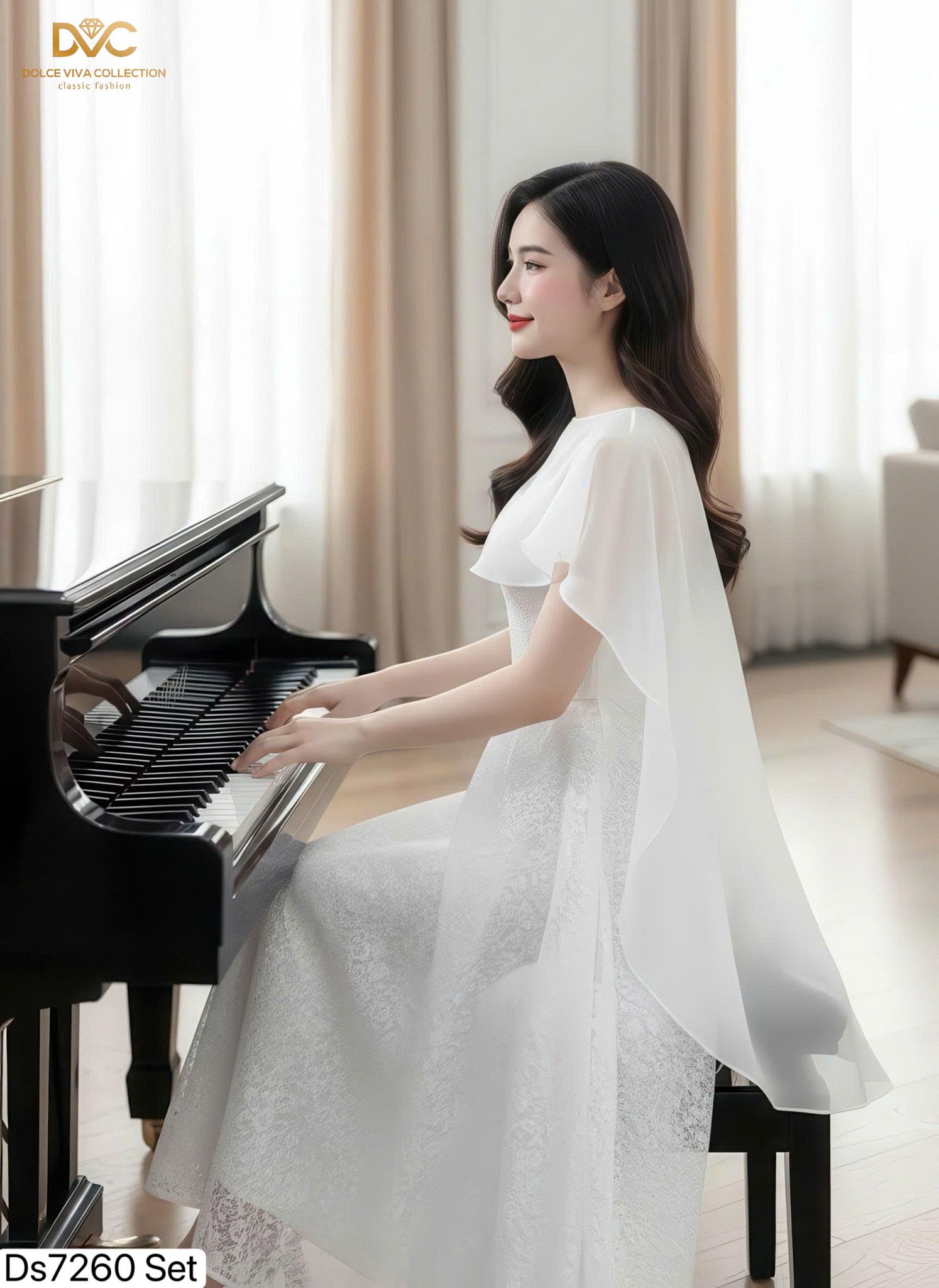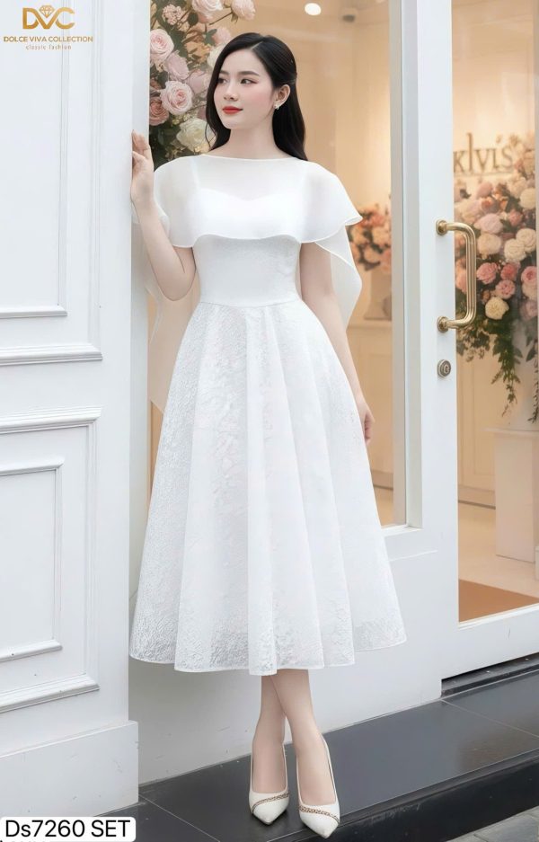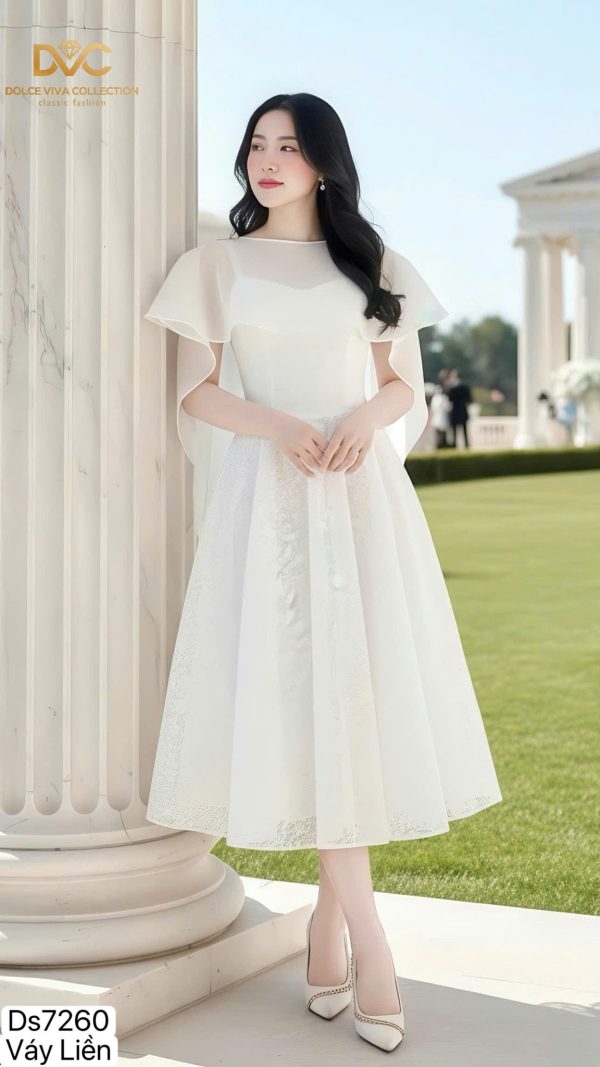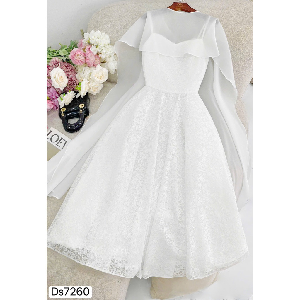✨ Highlights: Integrated chiffon cape | Refined lace detailing | Flattering one-piece silhouette