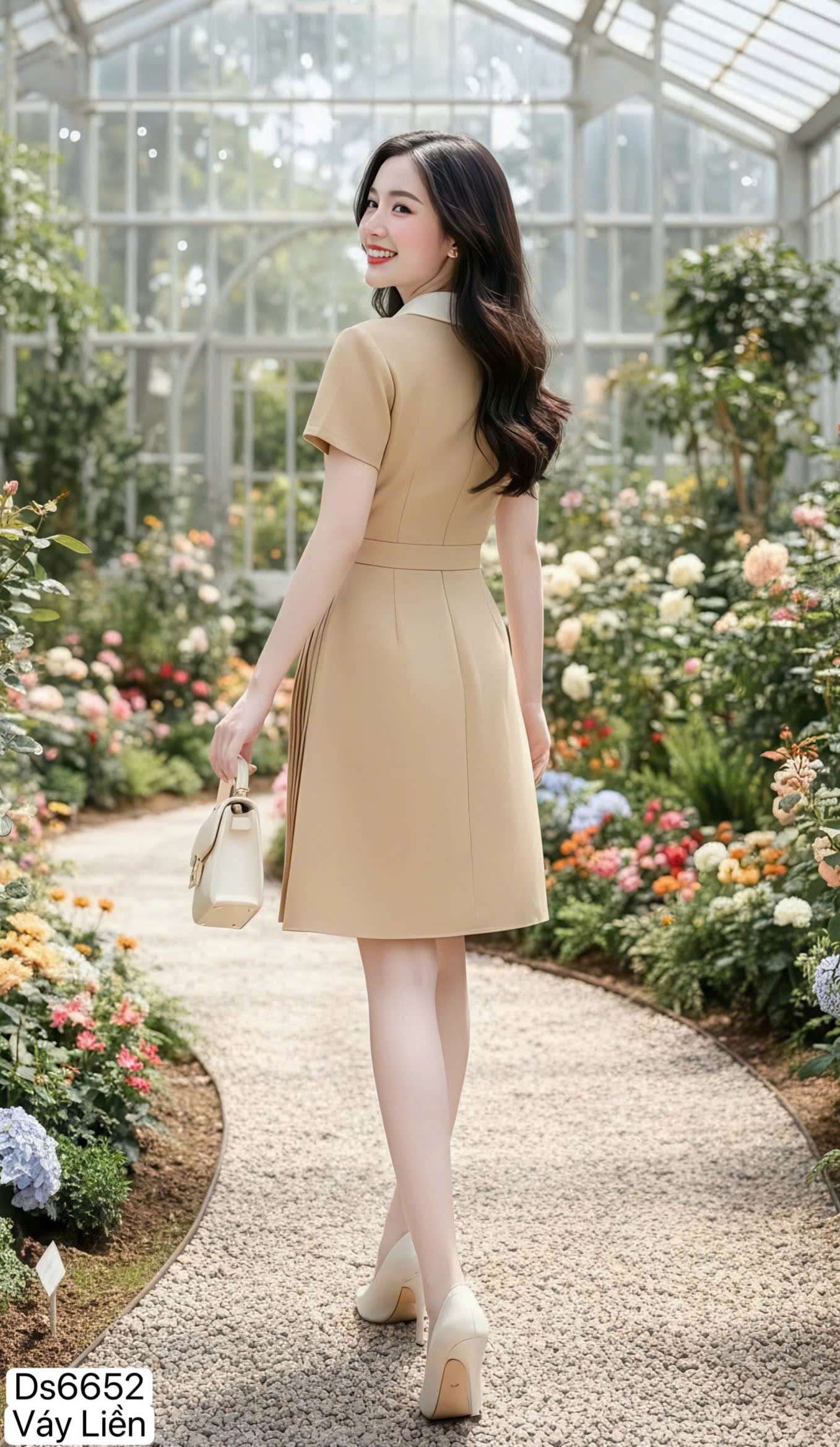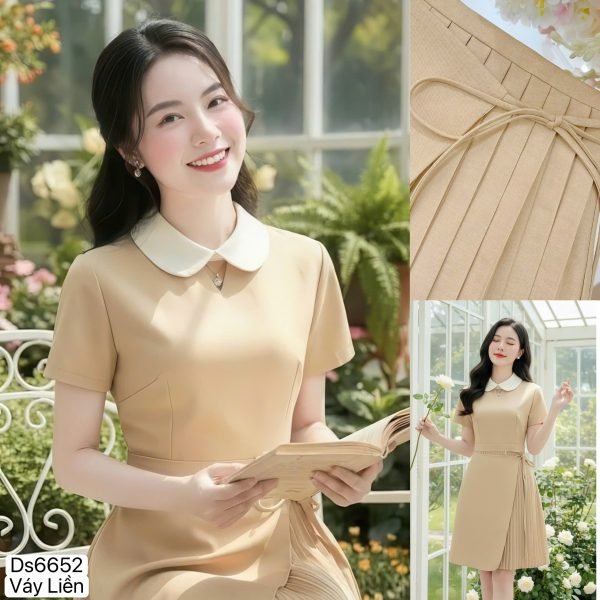 ✨ Highlights: White-trimmed pointed collar | Pearl bow accent | Asymmetrical pleated skirt | A-line silhouette